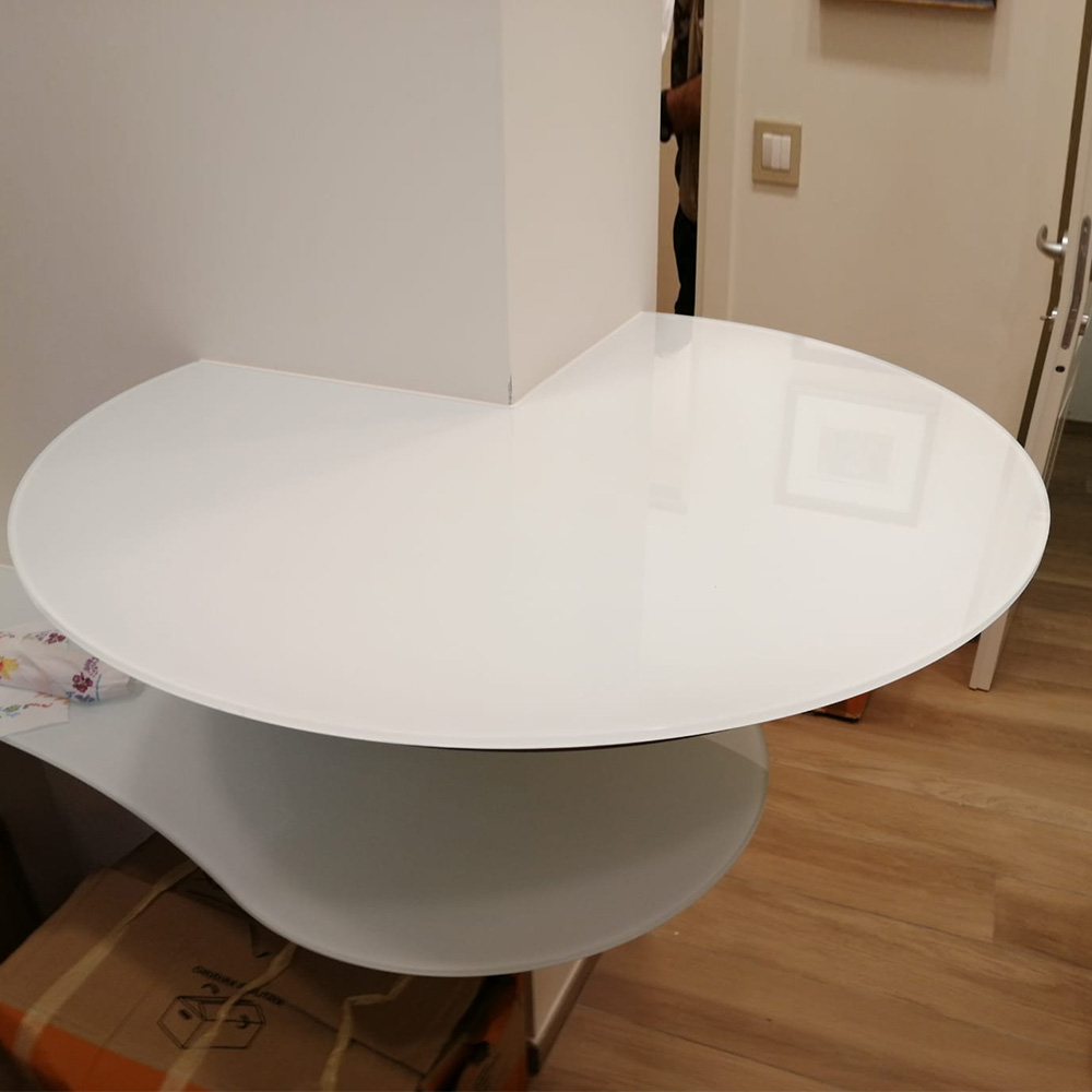 Tavolo su misura in Lacobel bianco temperato